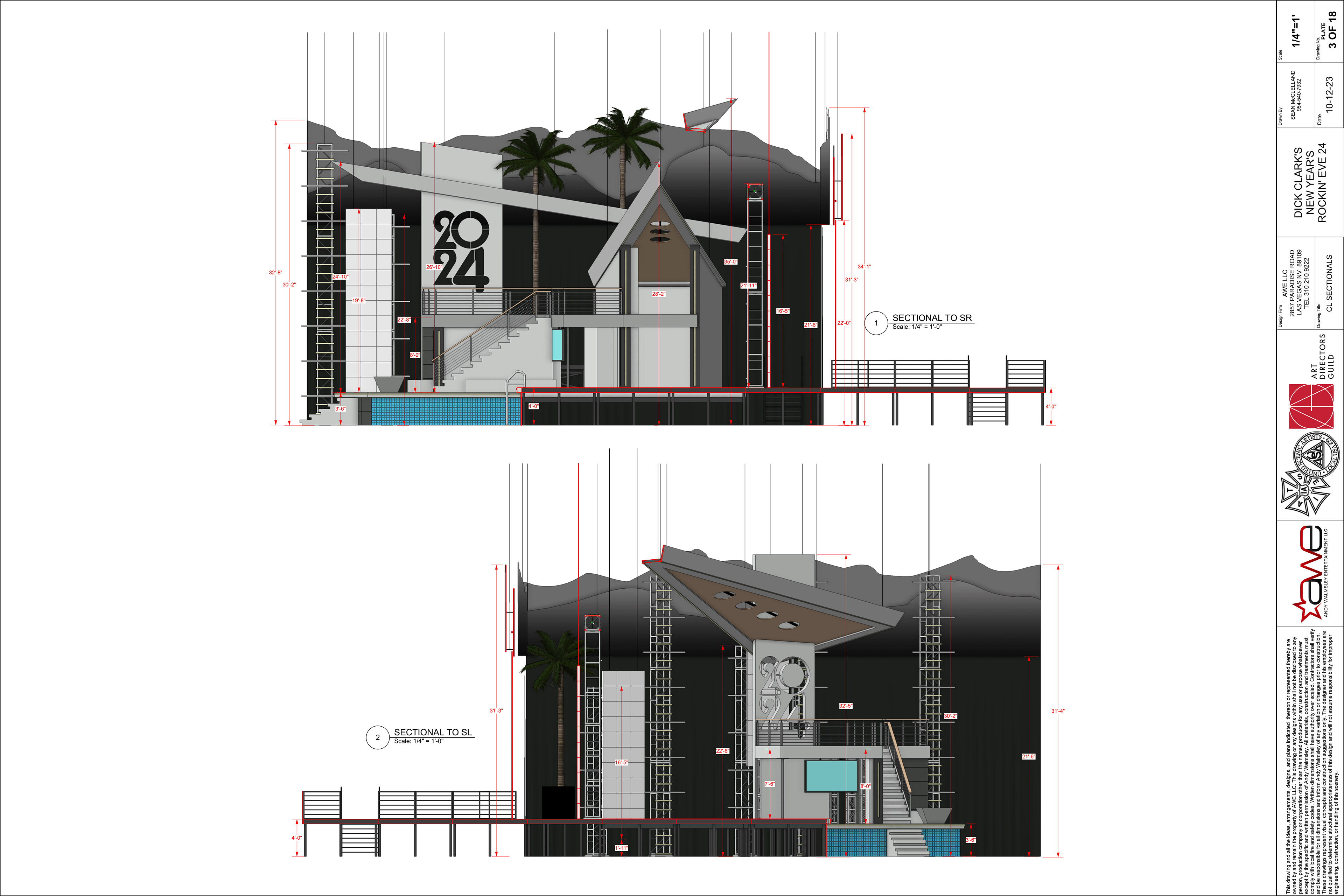 I had 9 days to put this package together and get it approved and sent off to all other departments so they could start their pre-show prep. The Drafting Package had: 18 Drafting plates and 2 Painters Plates with the full 3D Model.
